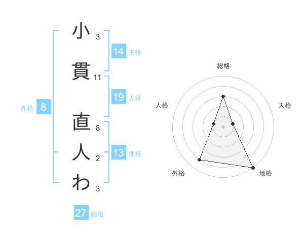 小貫 直人わさんを姓名の画数から五運を鑑定