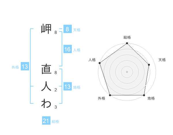 岬 直人わさんの外格は13画の5点!