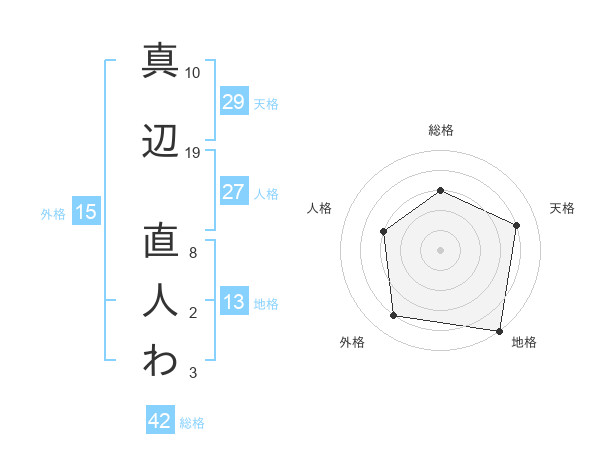 真辺 直人わさんの総格は42画の3点!