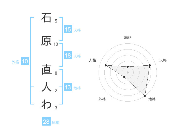 石原 直人わさんの地格は13画の5点!