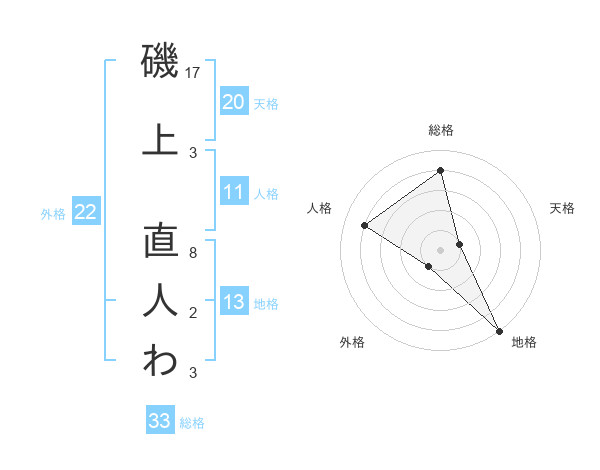 磯上 直人わさんの地格は13画の5点!