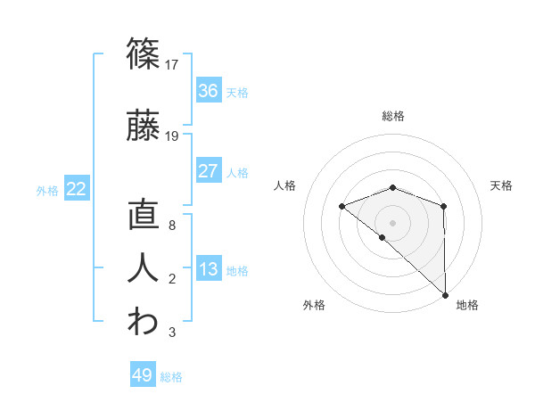 篠藤 直人わさんを姓名の画数から五運を鑑定