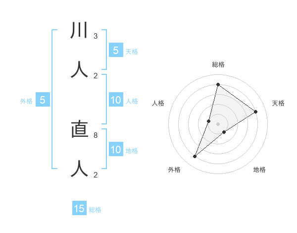 川人 直人さんの総格は15画の4点!