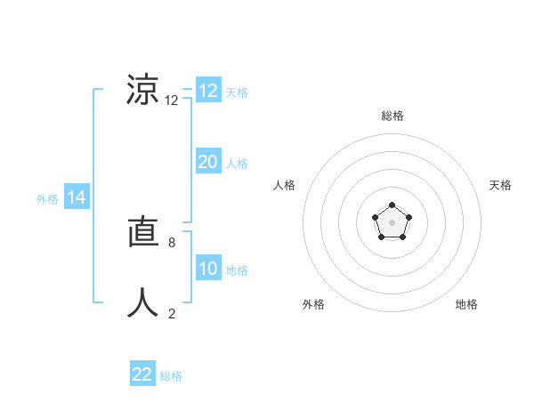 涼 直人さんの総格は22画の1点!