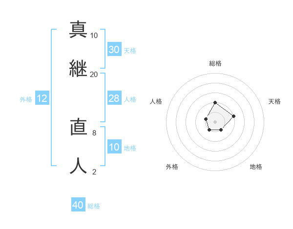 真継 直人さんの総格は40画の2点!