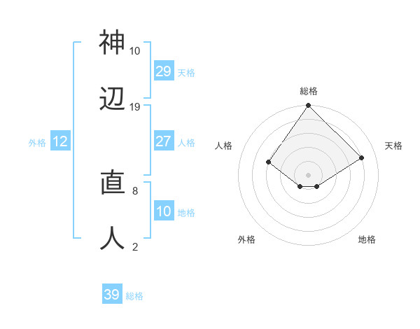 神辺 直人さんの総格は39画の5点!