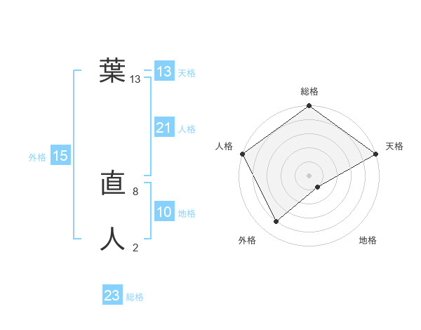 葉 直人さんの総格は23画の5点!