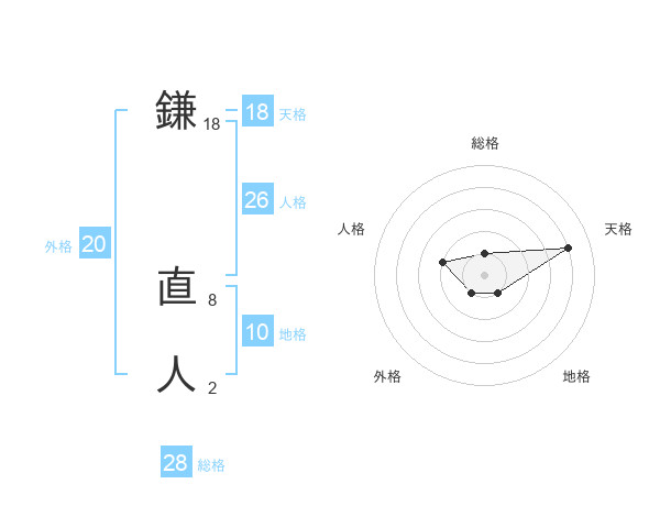 鎌 直人さんの総格は28画の1点!