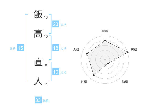 飯高 直人さんの天格は23画の5点!