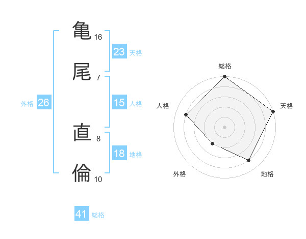 亀尾 直倫さんの総格は41画の5点!