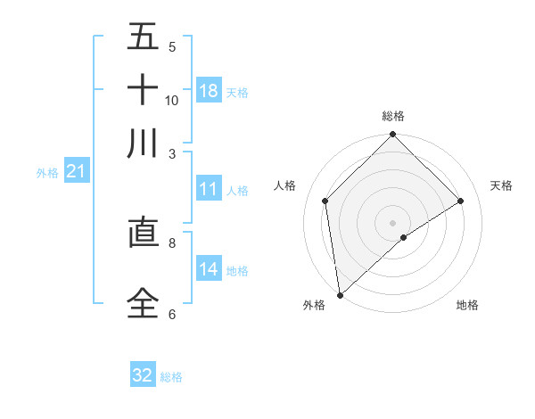 五十川 直全さんの総格は32画の5点!