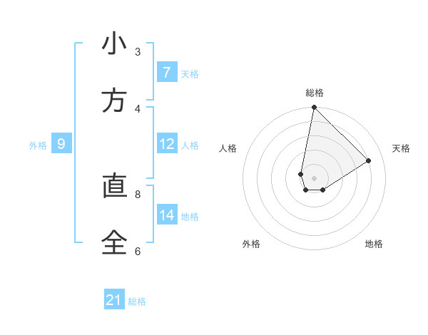 小方 直全さんの総格は21画の5点!