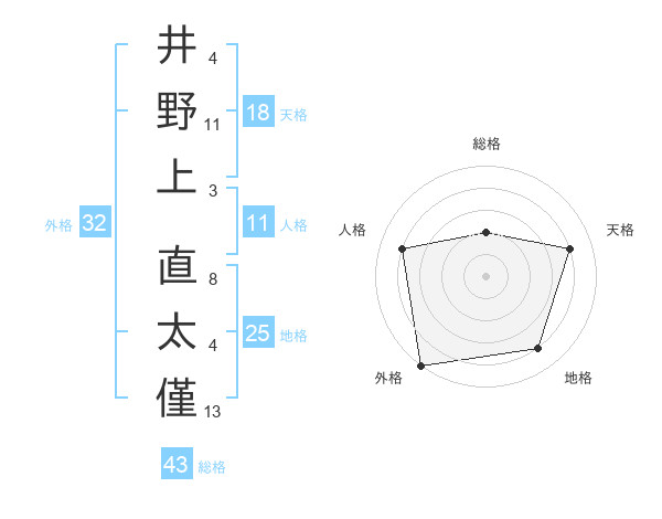 井野上 直太僅さんを姓名の画数から五運を鑑定