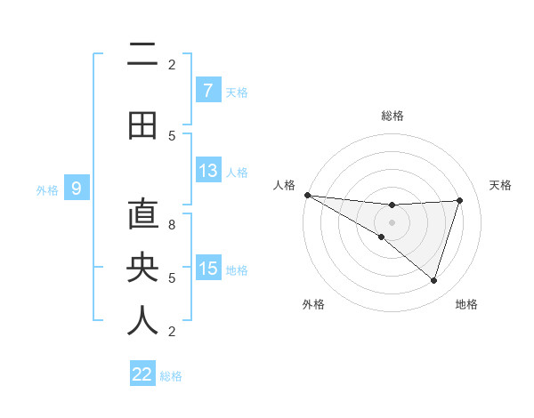 二田 直央人さんを姓名の画数から五運を鑑定