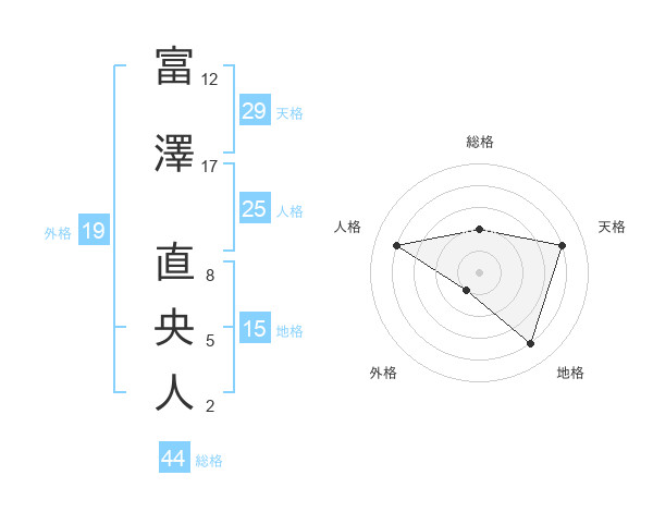 富澤 直央人さんを姓名の画数から五運を鑑定