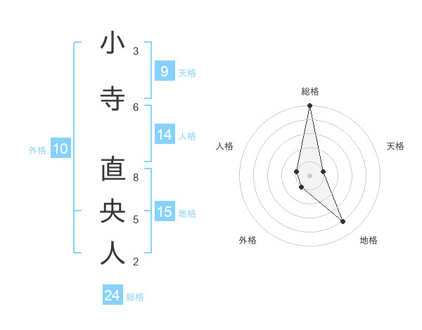 小寺 直央人さんを姓名の画数から五運を鑑定