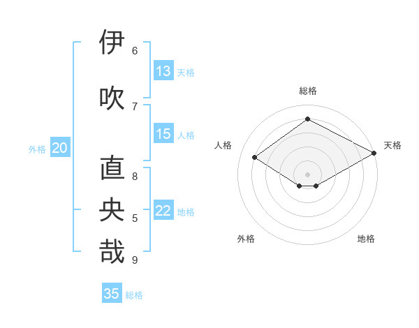 伊吹 直央哉さんの総格は35画の4点!