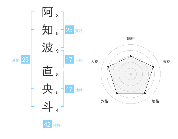 阿知波 直央斗さんの天格は25画の4点!