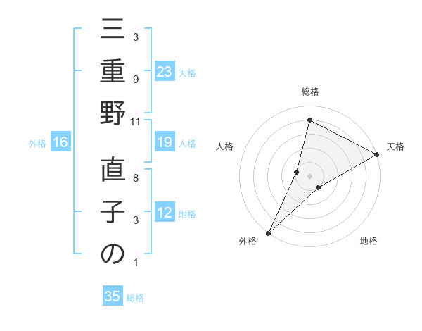 三重野 直子のさんを姓名の画数から五運を鑑定