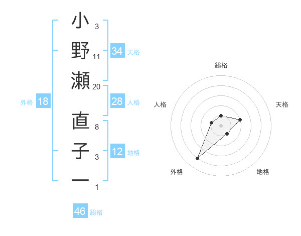 小野瀬 直子一さんを姓名の画数から五運を鑑定