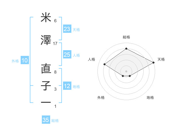 米澤 直子一さんの総格は35画の4点!