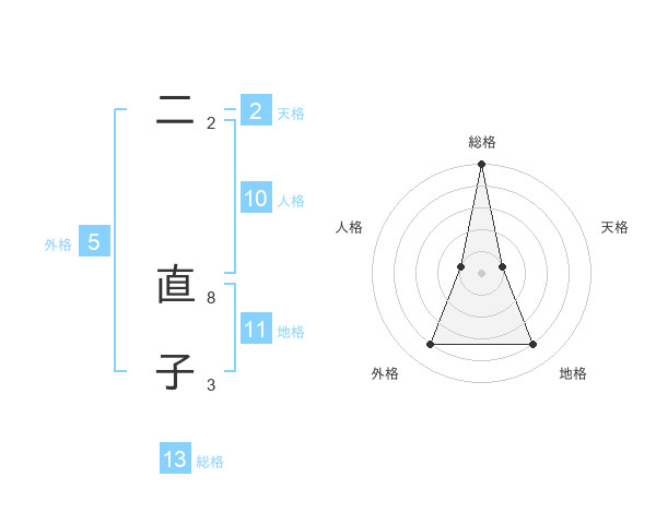 二 直子さんの総格は13画の5点!