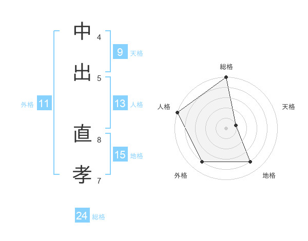 中出 直孝さんの総格は24画の5点!