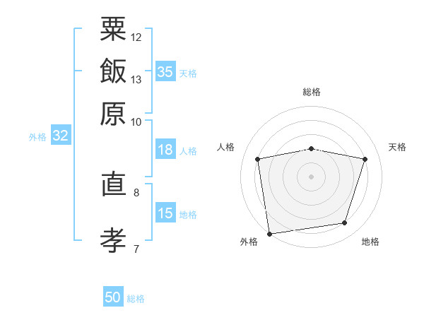 粟飯原 直孝さんを姓名の画数から五運を鑑定