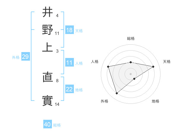 井野上 直實さんの総格は40画の2点