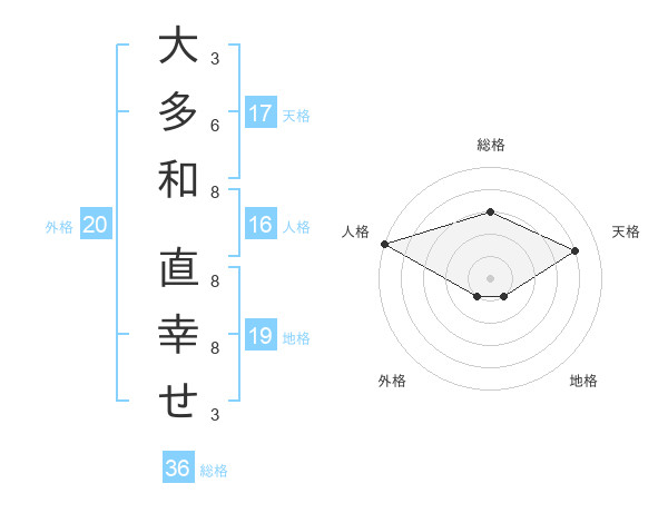 大多和 直幸せさんを姓名の画数から五運を鑑定