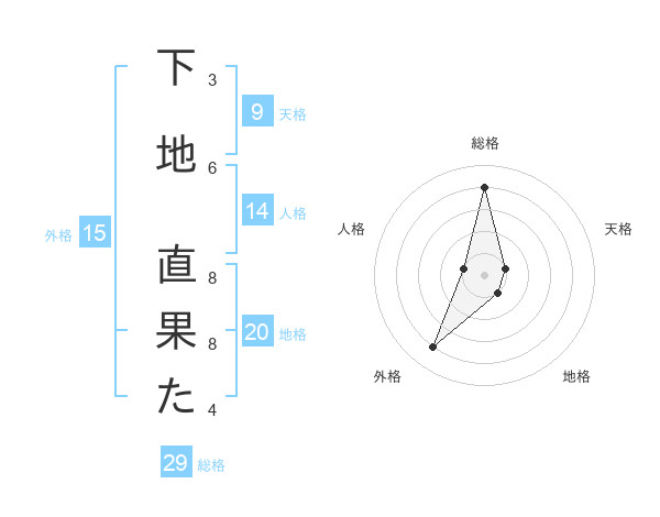下地 直果たさんの総格は29画の4点!