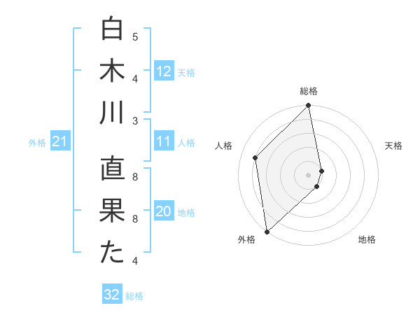 白木川 直果たさんを姓名の画数から五運を鑑定
