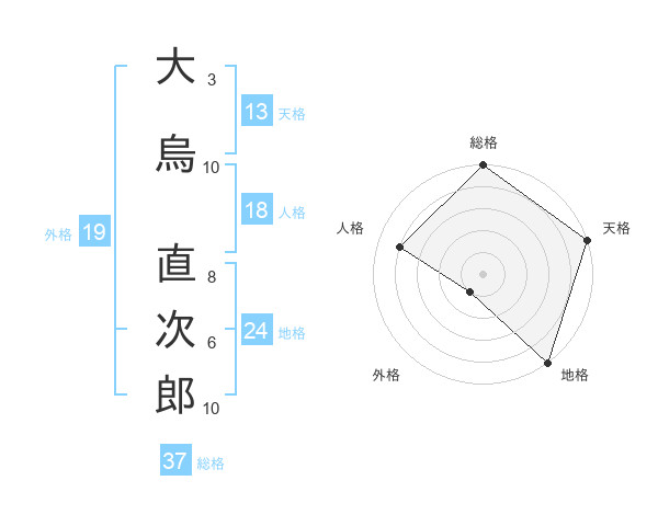 大烏 直次郎さんの天格は13画の5点!
