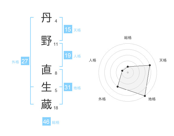 丹野 直生蔵さんの地格は31画の5点!