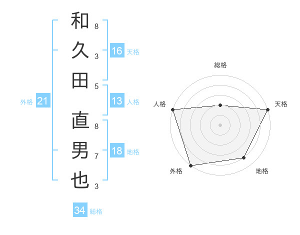 和久田 直男也さんを姓名の画数から五運を鑑定