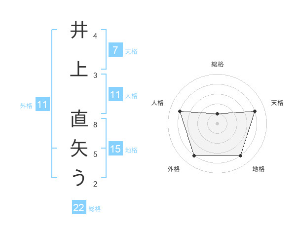 井上 直矢うさんを姓名の画数から五運を鑑定