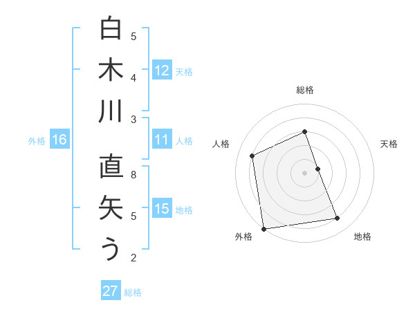 白木川 直矢うさんを姓名の画数から五運を鑑定
