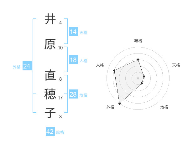 井原 直穂子さんの外格は24画の5点