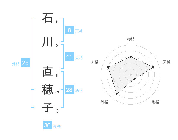 石川 直穂子さんの総格は36画の3点