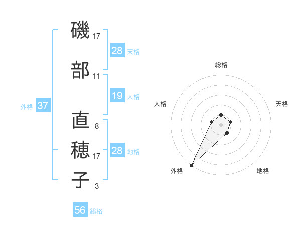 磯部 直穂子さんを姓名の画数から五運を鑑定
