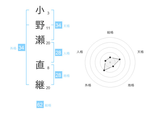 小野瀬 直継さんの総格は62画の1点!