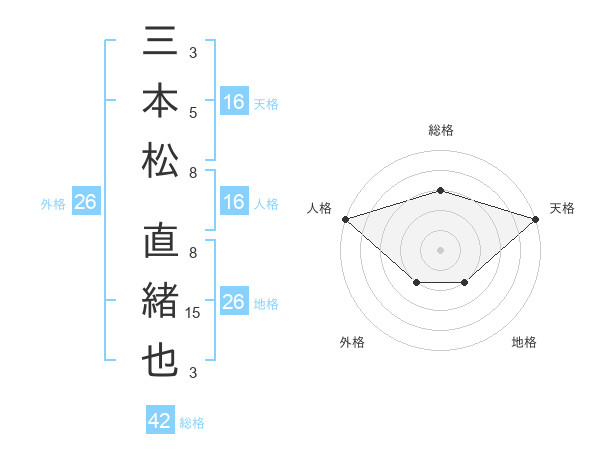 三本松 直緒也さんを姓名の画数から五運を鑑定