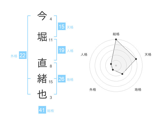 今堀 直緒也さんの総格は41画の5点!