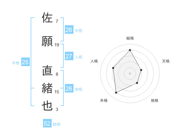 佐願 直緒也さんを姓名の画数から五運を鑑定