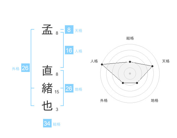 孟 直緒也さんを姓名の画数から五運を鑑定