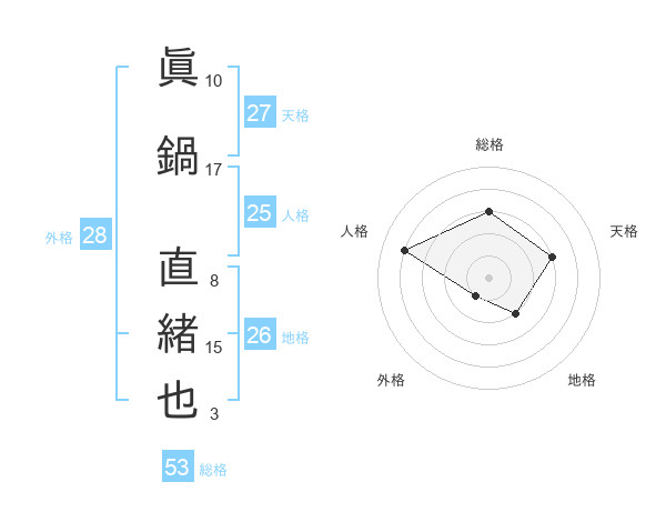 眞鍋 直緒也さんを姓名の画数から五運を鑑定