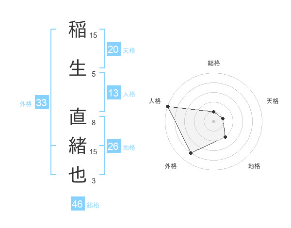 稲生 直緒也さんを姓名の画数から五運を鑑定