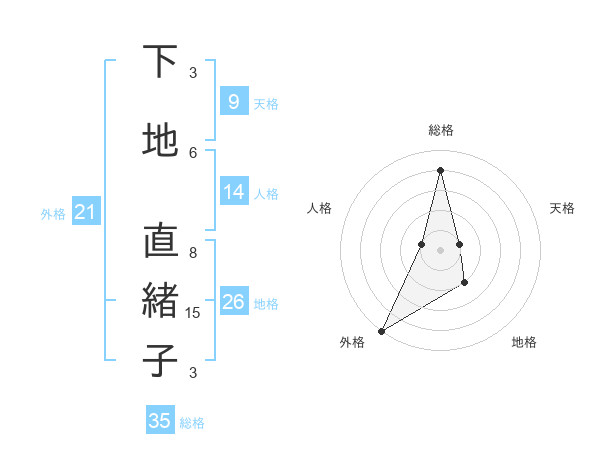 下地 直緒子さんを姓名の画数から五運を鑑定