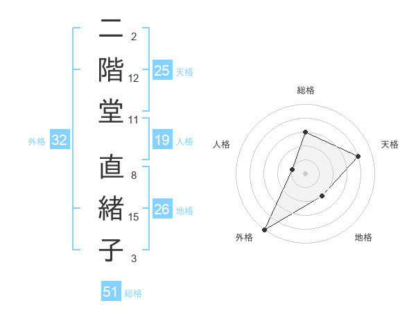 二階堂 直緒子さんを姓名の画数から五運を鑑定