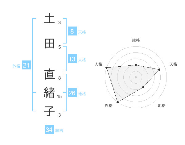 土田 直緒子さんを姓名の画数から五運を鑑定